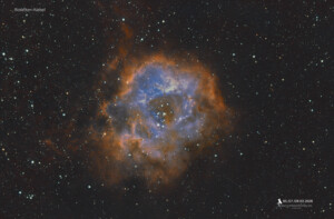 Sky-Watcher N 150/750 PDS; Sky-Watcher EQ6-R Pro; Omegon Guidescope 50/200 mm; Guidingcam: Omegon GUIDE 2000C; Kamera: Omegon veTEC571C; Filter: Optolong L-eXtreme 2″ und IR/UV; mini PC mit Stellarium / N.I.N.A / SharpCap und PHD2