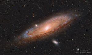 NGC 891 ist eine Spiralgalaxie und ca. 30 Millionen Lj. von uns entfernt. Sie steht am nördlichsten Sternenhimmel im Sternbild Andromeda.